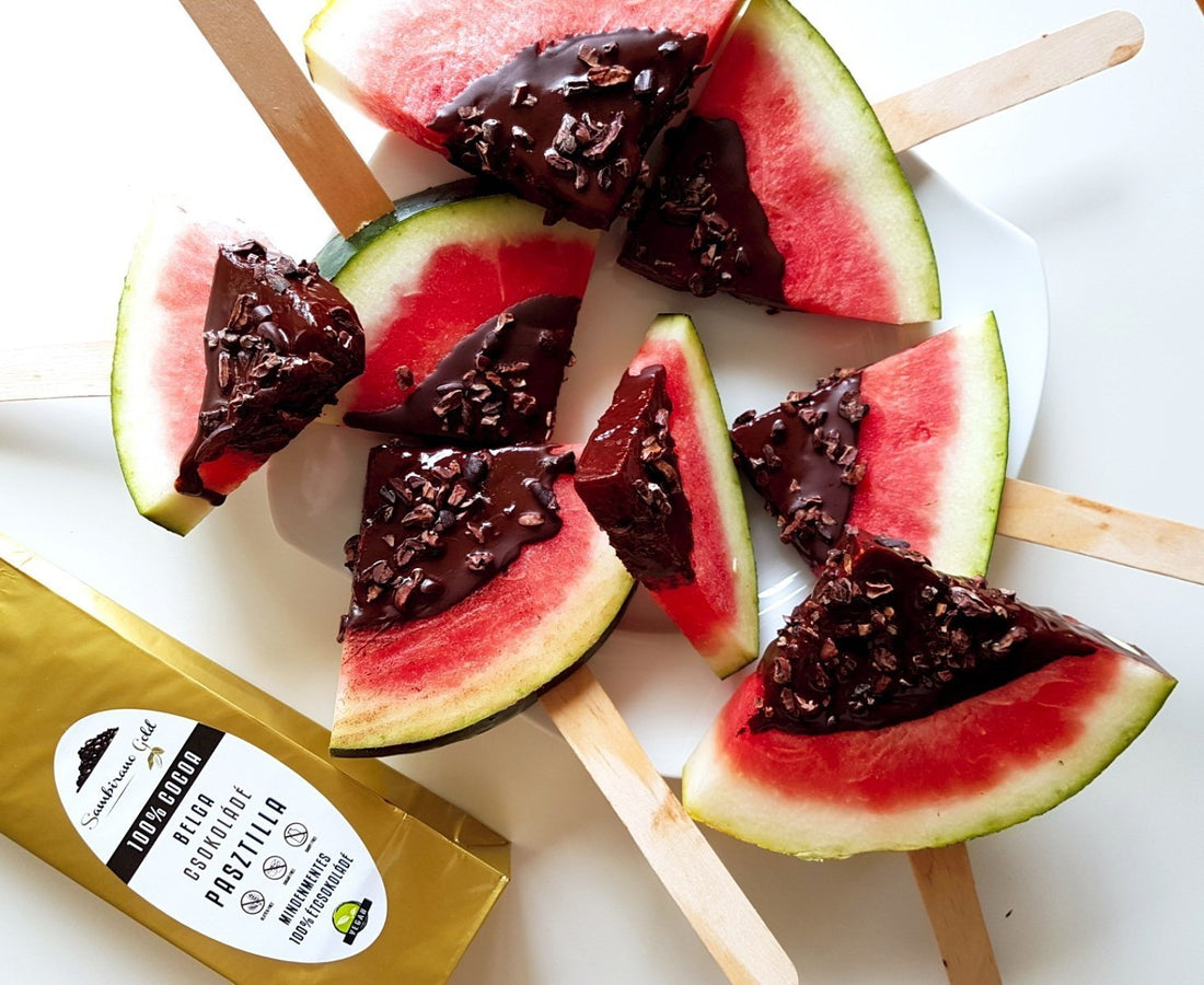 A nyár egyik legjobb gyümölcse a dinnye! Rengeteg vitamint és ásványi anyagot tartalmaz és kiválóan hidratálja a szervezetünket, valamint nagyon sok módon fogyasztható. Mi ebben a receptünkben fokozni szeretnénk még az erejét 100%-os csokoládéval és kakaóbab törettel, így még intenzívebb lesz a látványa és az egészségünkre gyakorolt hatása is.