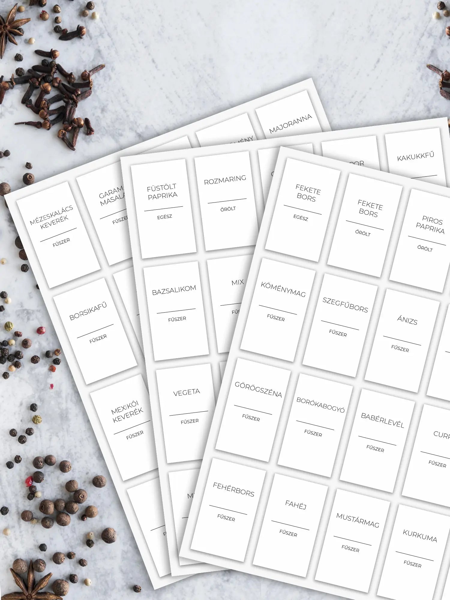 A csomag tartalma 60 db öntapadós, víz és olaj álló fűszer matrica.